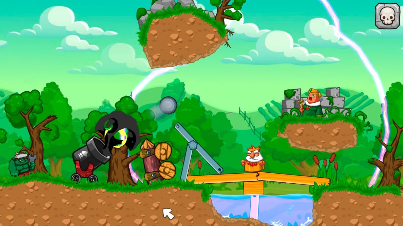 Защитите Короля и его семью, используя стены, мосты, каменные блоки, воздушные шары и механизмы. Знакомая игра с правилами наоборот – но поможет ли опыт «птичек» здесь? Придётся рассчитывать не только траекторию атаки, но и прочность, материалы и физику элементов. Решения могут быть непредсказуемыми – так, чтобы избежать сокрушительной атаки по земле тарана, нужно привязать к основанию «крепости» шарики.